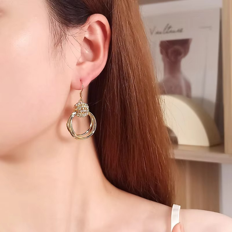 Elegant Crystal Ring Drop Earrings ঠিক তেমনই—সফট শাইন, রোজ গোল্ড ফিনিশ আর প্রিমিয়াম লুকের পারফেক্ট কম্বিনেশন।